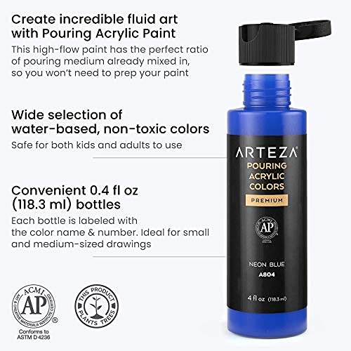 ARTEZA Acrylic Pouring Paint Set, 8 Rainbow Colors, 4 oz Bottles, High-Flow Paint, No Mixing Needed, Art Supplies for Canvas, Glass, Paper, Wood, Tile, and Stones