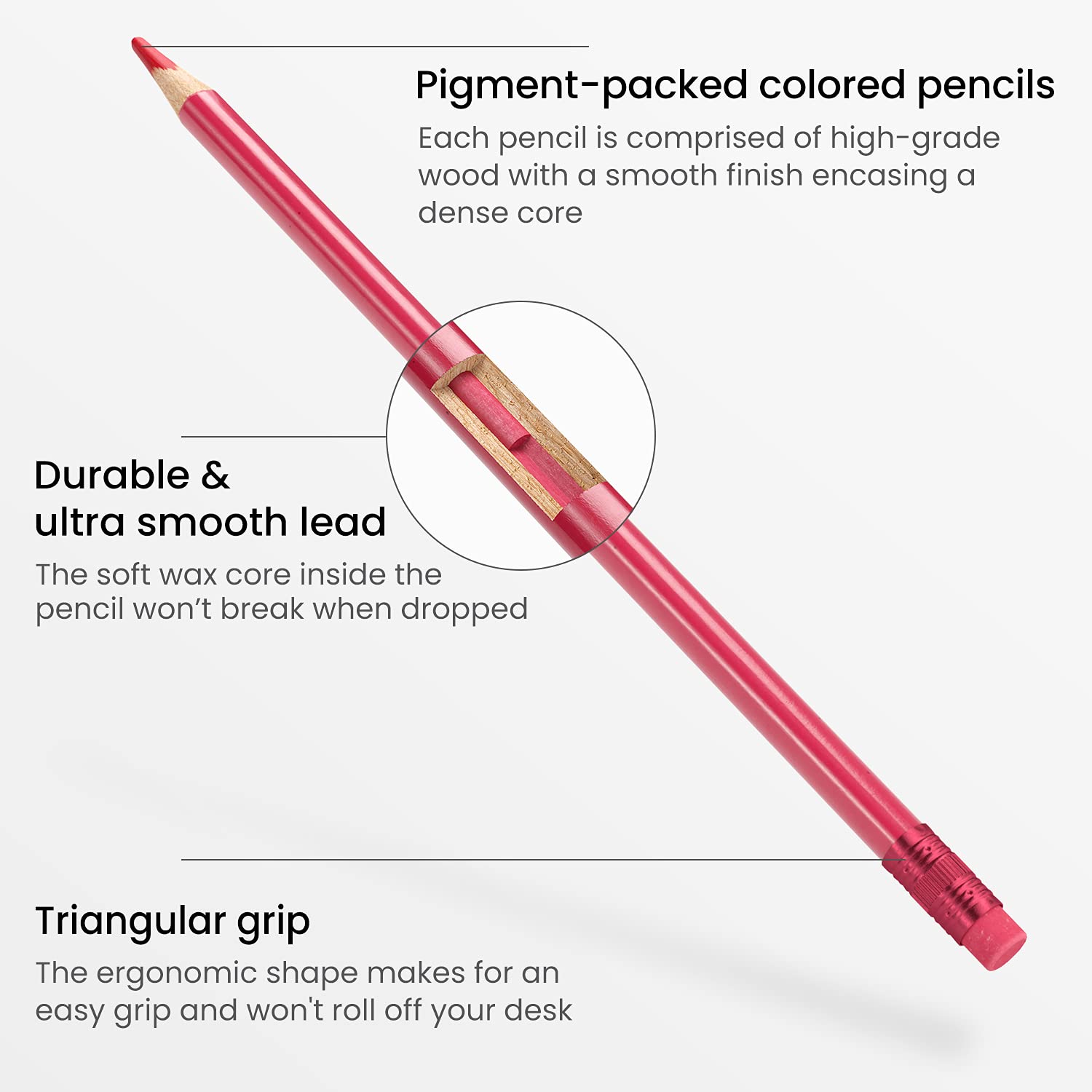 - Mistakes Are Easy to Erase: Each of our colored drawing pencils in this set has its own eraser, making it simple to erase and start again.