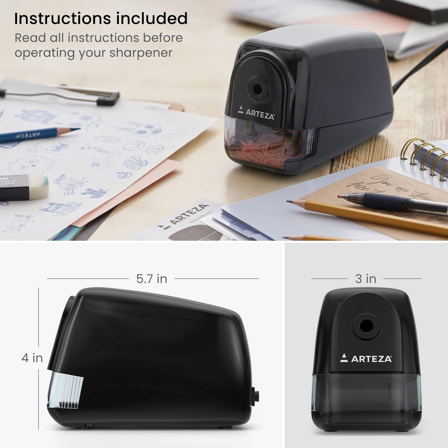 Arteza Pencil Sharpener, Black, Quiet Pencil Sharpener for 8-mm Pencils, Office Supplies for Teachers, Students, and Classrooms, Art Studios, and Workspaces