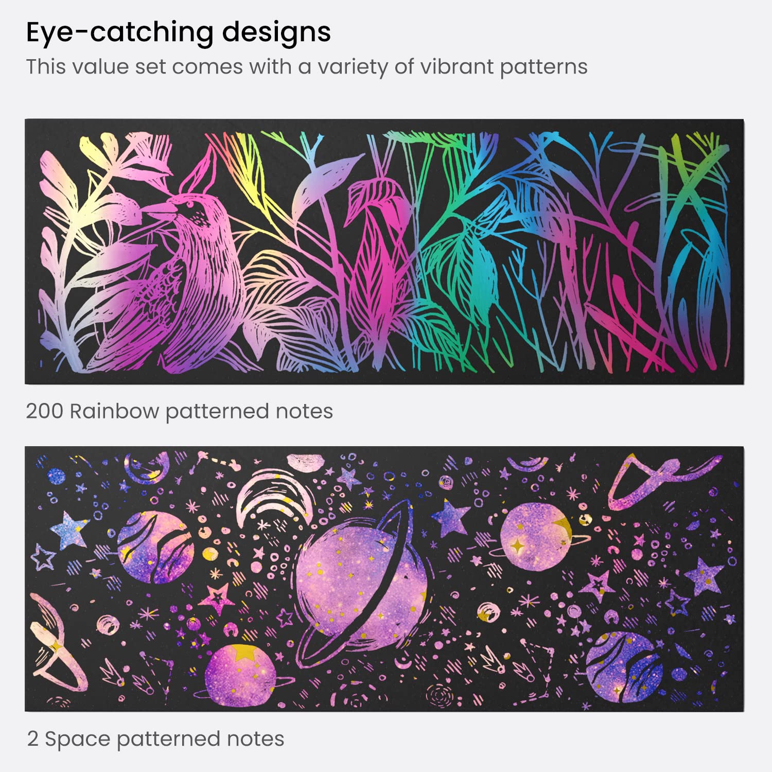 Arteza Scratch Paper, Set of 202 Notes, 3.5 x 3.5 Inches, 200 Rainbow and 2 Gold-Foil Star Backgrounds, Includes 2 Scratchers and 2 Sharpeners, Art Supplies for Craft and DIY Projects—