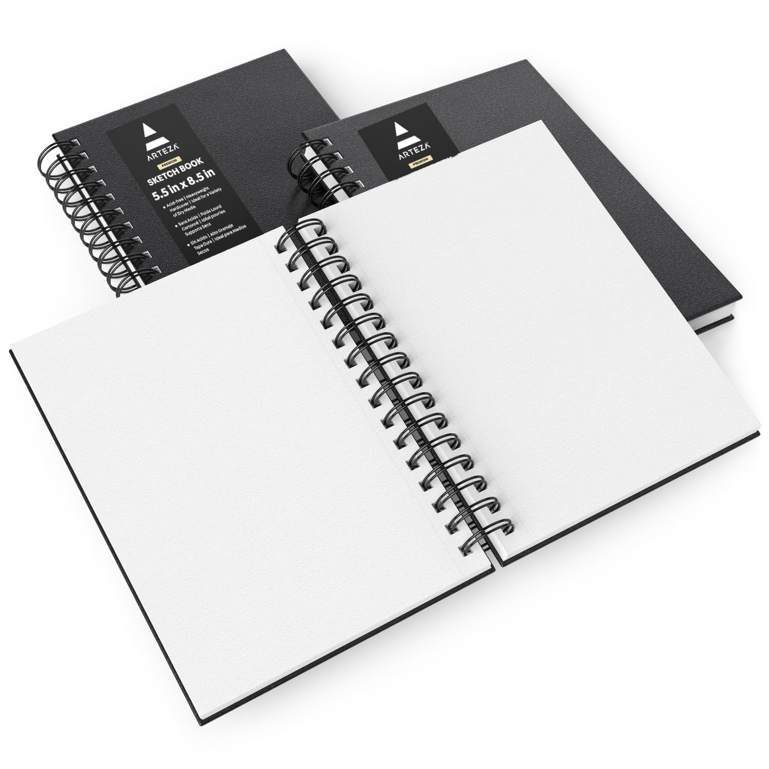 ARTEZA Spiral Sketch Book 5.5x8.5 Drawing Pad 3 Pack 100 Sheets Sketch Pads for Drawing for Adults & Teens